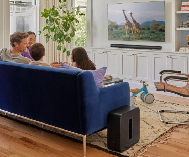 Associez le Sonos Sub 4 à une barre de son Sonos Arc, Beam ou Era pour obtenir des basses incroyablement profondes et des aigus cristallins. Plongez au cœur de vos films et séries préférés grâce à un son surround digne des meilleures salles de cinéma.